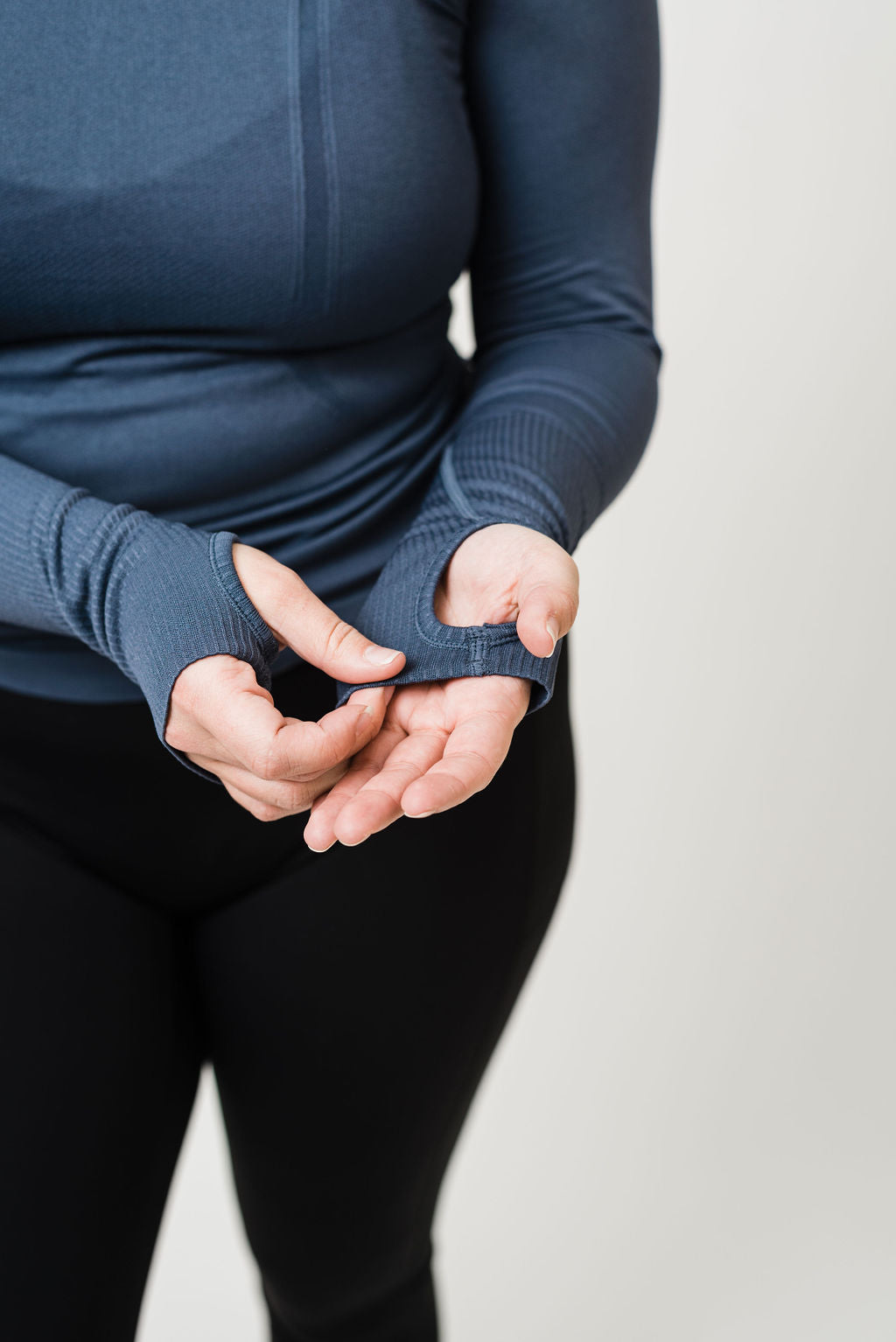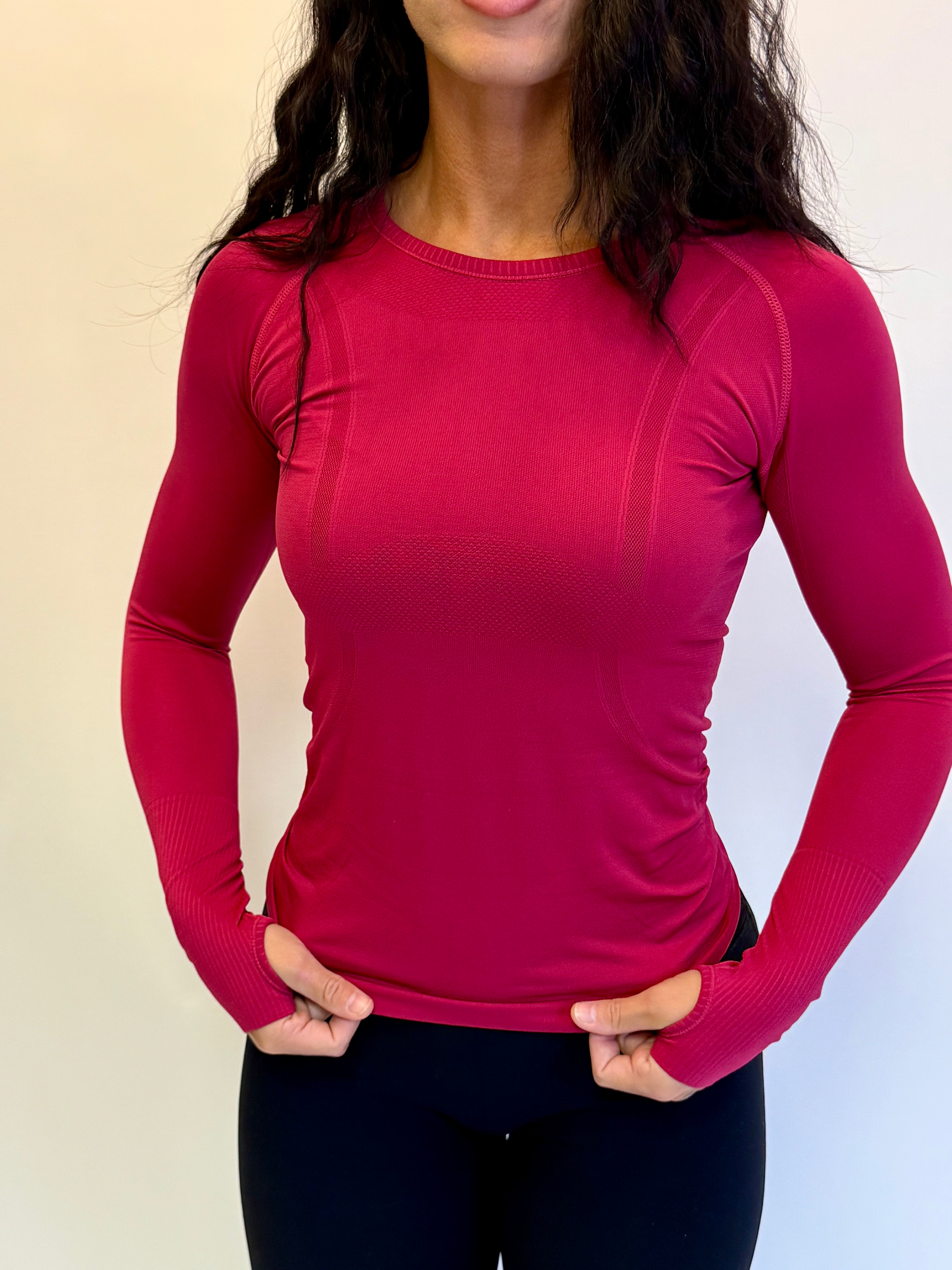 Level up your layering game with this new essential long sleeve. The compressive fabric makes this a comfy, performance top, so you can stay cozy and on-trend from your workouts to lounge.