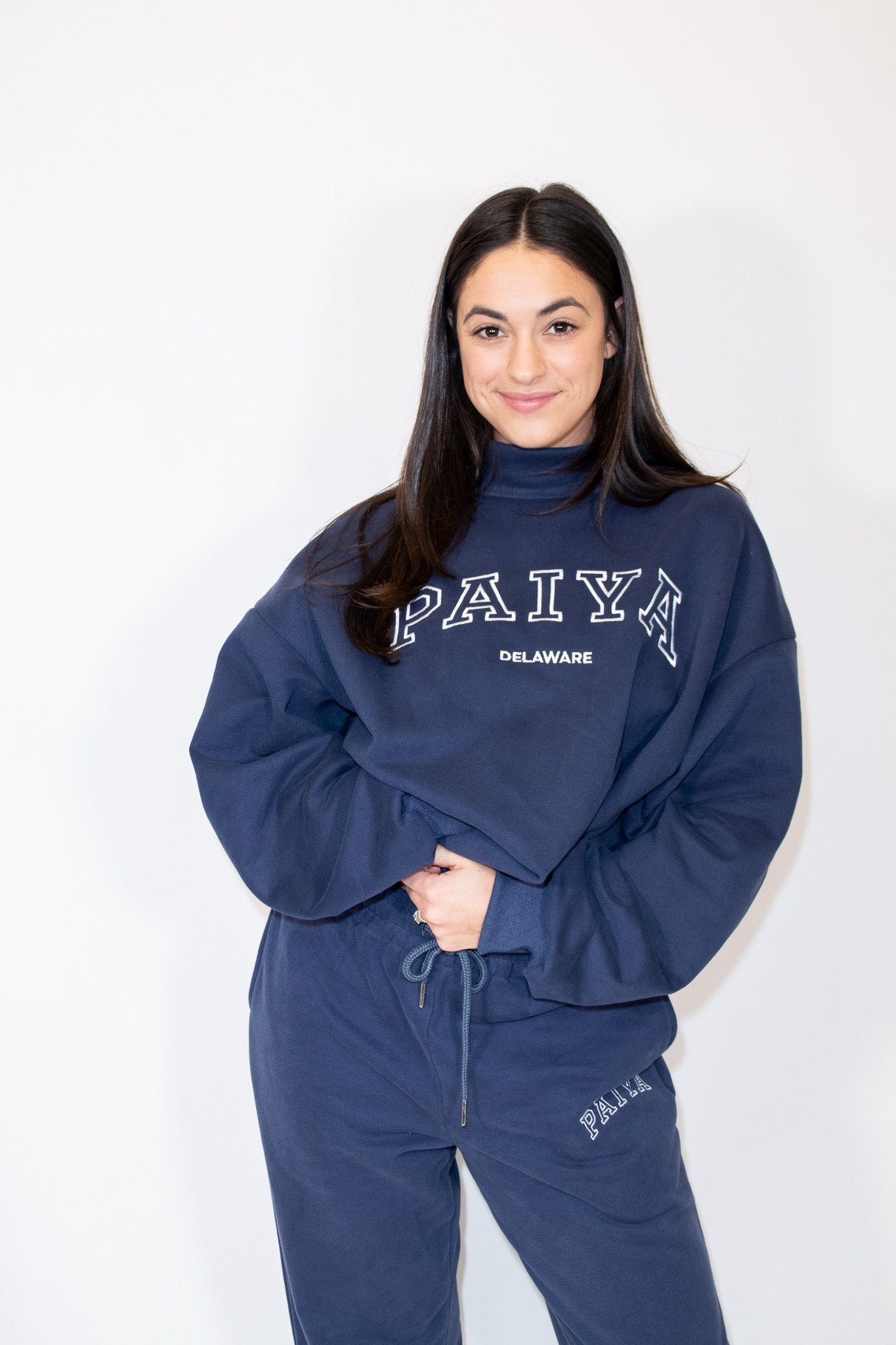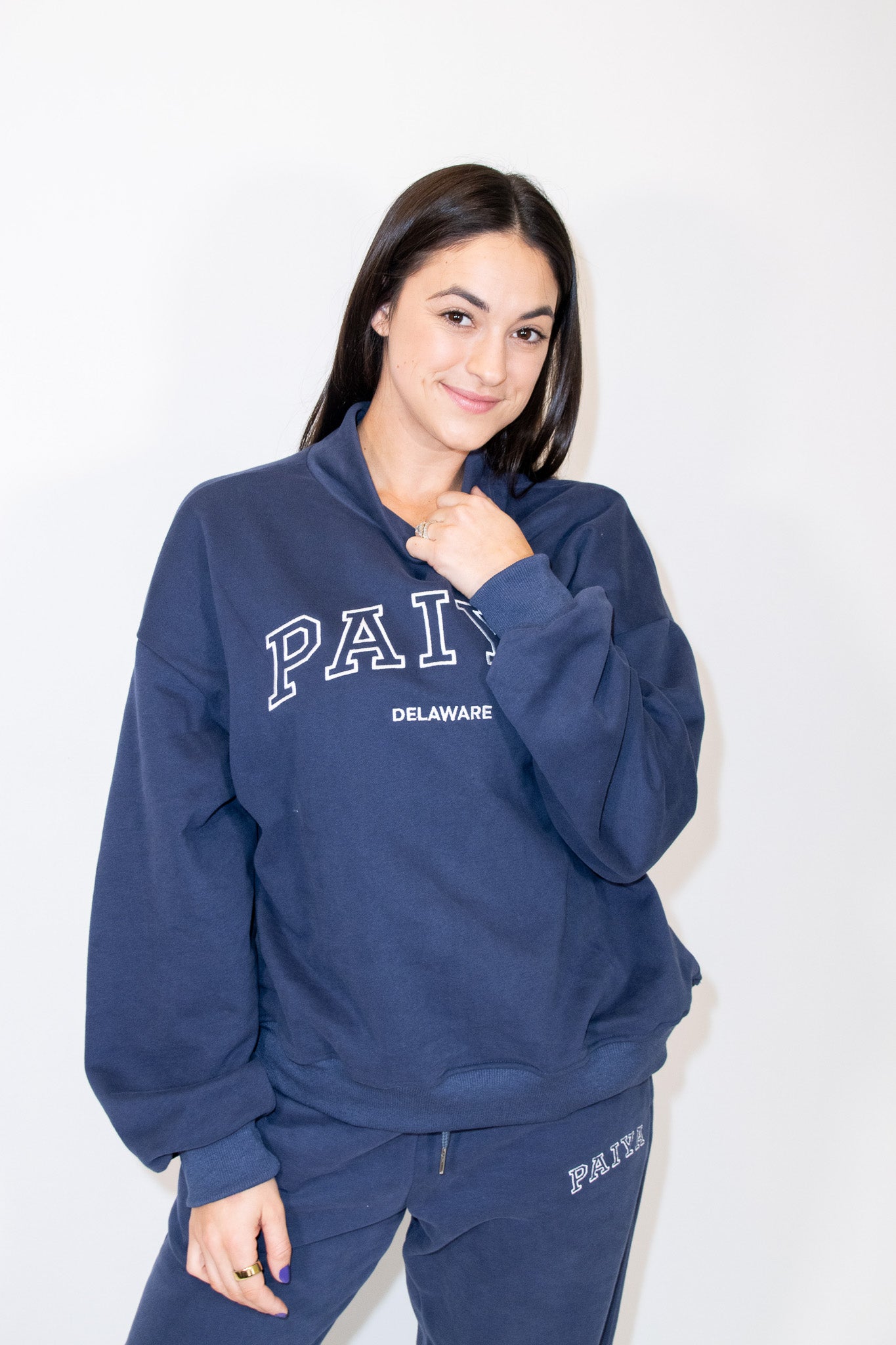 Elevate your casual wardrobe with this trendy mock neck sweatshirt that's perfect for layering or wearing solo. Featuring a bold embroidered logo, it's a stylish nod to our brand/ state pride with serious comfort credentials. The relaxed fit and soft fabric make it ideal for everything from weekend hangouts to cozy nights in. Rep your roots in style.