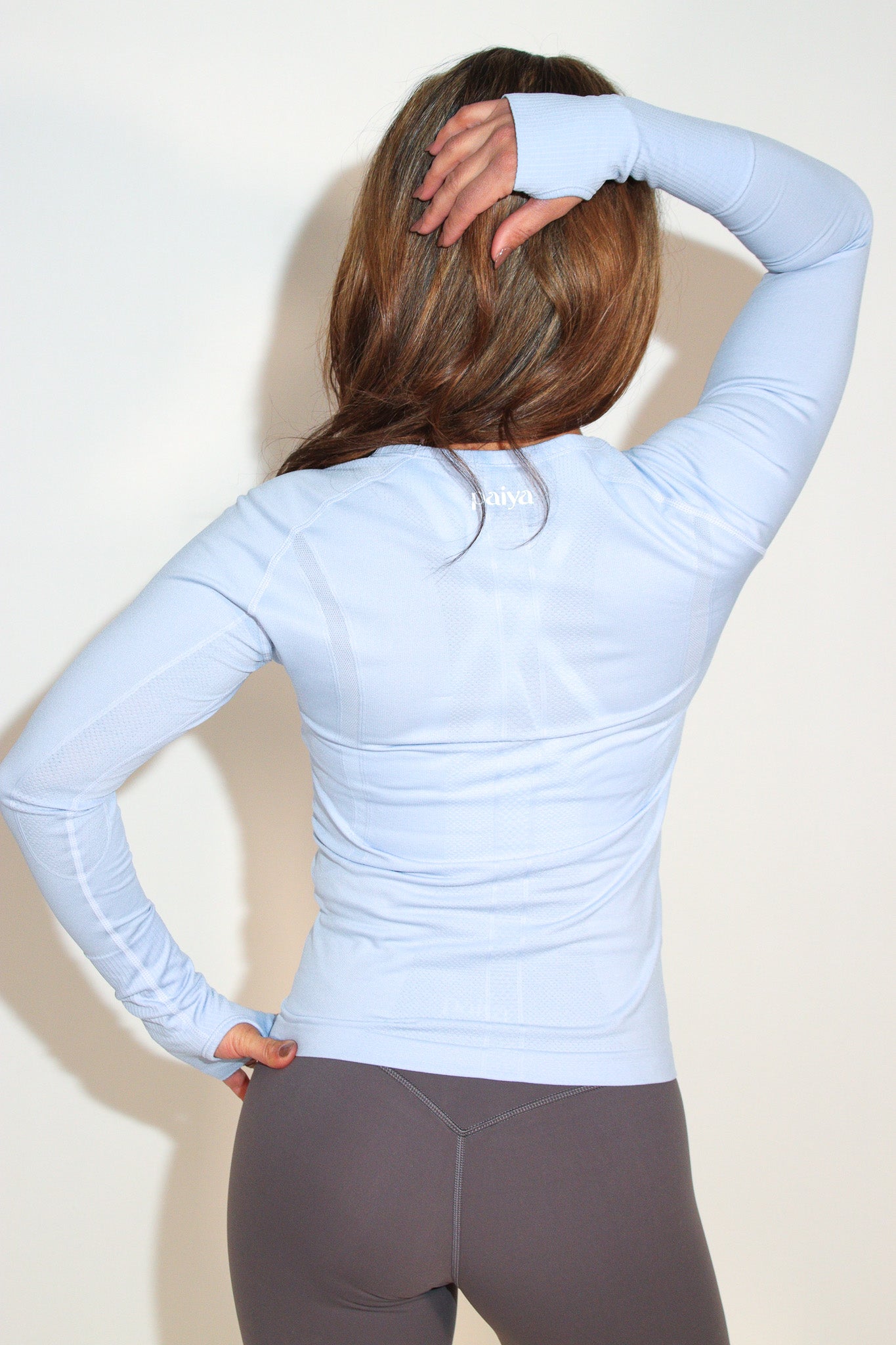 Level up your layering game with this new essential long sleeve. The compressive fabric makes this a comfy, performance top, so you can stay cozy and on-trend from your workouts to lounge.