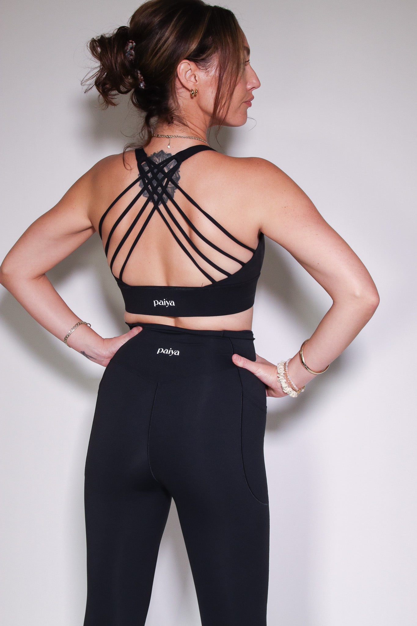 Our newest bra features a stunning criss-cross back. The back straps make this bra extra durable for any workout or activity your day might bring. Wear this as a sports bra under one of your Paiya tops or pair it with its matching Bare Biker Shorts for the perfect fit!